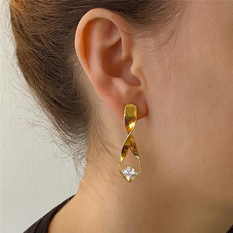 3. BRINCO ESPIRAL COM ZIRCÔNIA QUADRADA BANHO OURO 18K