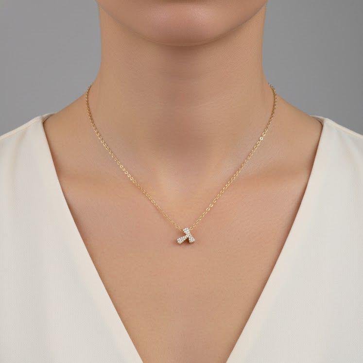 COLAR PINGENTE LETRA T CRAVEJADA BANHO OURO 18K