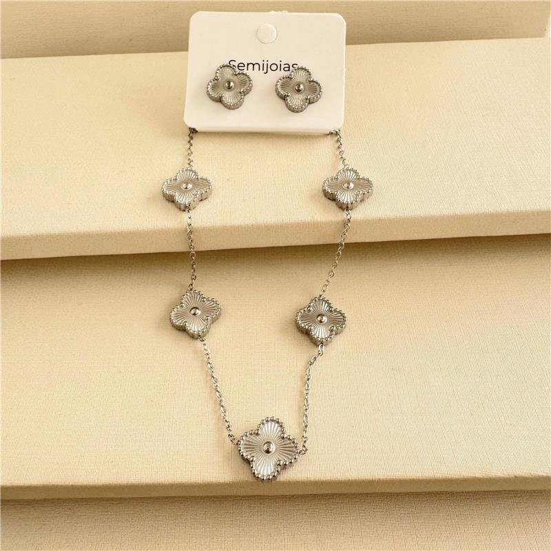 Conjunto: Sofisticação e Estilo em Cada Detalhe:O conjunto é uma verdadeira expressão de sofisticação, com um design exclusivo que confere charme e elegância ao seu visual. Em aço inoxidável, este colar oferece um acabamento de alta qualidade, realçando o brilho e garantindo durabilidade à peça.