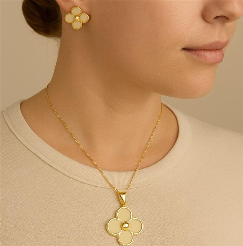 Colar: Sofisticação e Estilo em Cada Detalhe:O colar é uma verdadeira expressão de sofisticação, com um design exclusivo que confere charme e elegância ao seu visual. Folheado em ouro 18k, este colar oferece um acabamento de alta qualidade, realçando o brilho e garantindo durabilidade à peça.